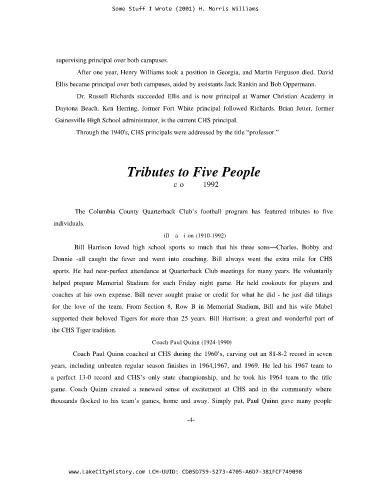 The Columbia County Quarterback Club’s football program has featured tributes to five