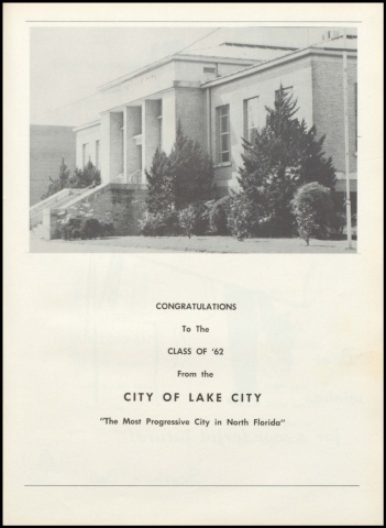 CONGRATULATIONS To The CLASS OF '62 From the CITY OF LAKE CITY "The Most Progressive City in North Florida"