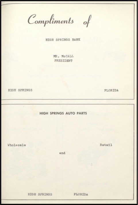 1--- Co~npA~nenfd o/ HIGH SPRINGS BANK MR. McCALL PRESIDENT HIGH SPRINGS FLORIDA HIGH SPRINGS AUTO PARTS . Wholesale Retail and HIGH SPRINGS FLORIDA