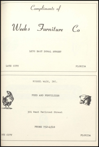 5-urnilure 1270 EAST DUVAL STREET LAKE CITY FLORIDA RUSSEL WADE, INCo FEED AND FERTILIZER 301 West Railroad Street PHONE 752-4510 LAKE CITY FLORIDA