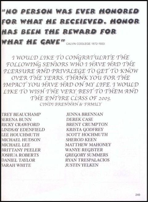tTU'E 'E'lftT'l'R'E CL~SS OfJ' 2003.